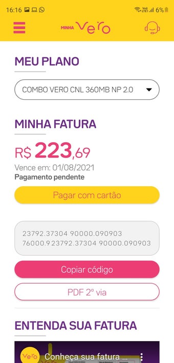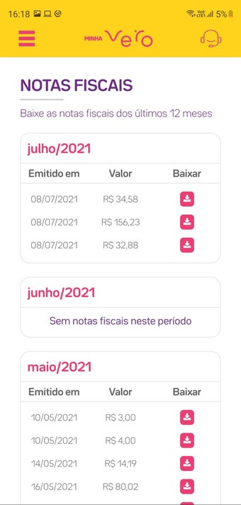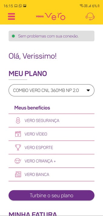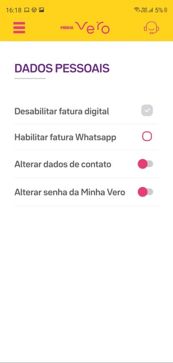 Minha Vero requer Android 9.0 ou superior. A versão atual do software é 3.1.9, e você pode obtê-lo em inglês e português.